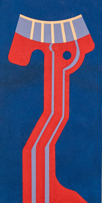 Flexible circuit boards which are instrumental in the development of compact devices such as cameras, smart phones, and computers have pristine and efficient designs. Intrigued and inspired by their minimal, yet intricately complex designs, Berberian disassembles these devices. She finds anthropomorphic shapes in these designs, which she paints as invented icons of human features.